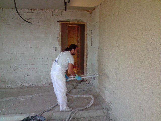 yeso aligerado con perlita de proyección mecánica, lo que nos permite: